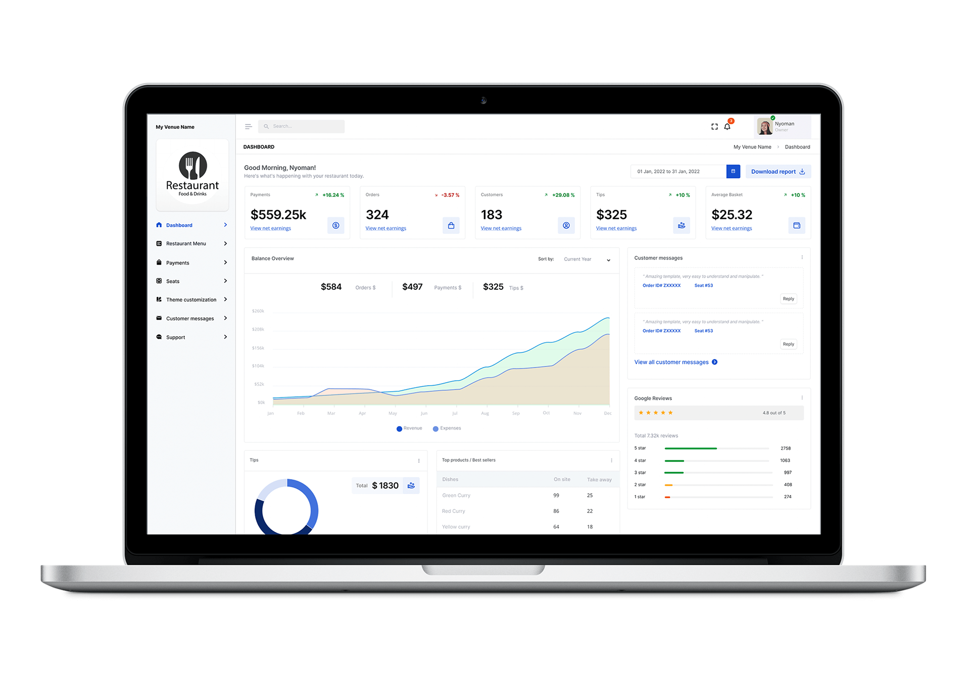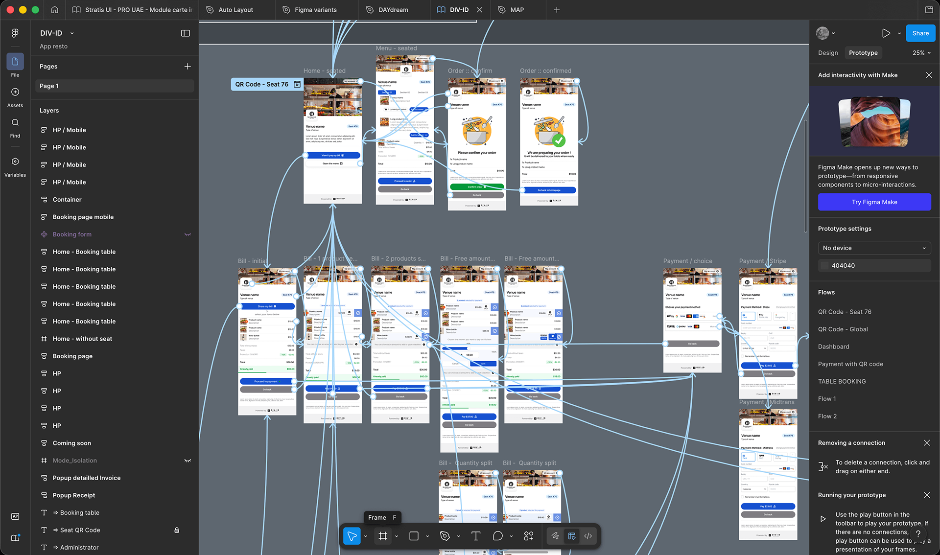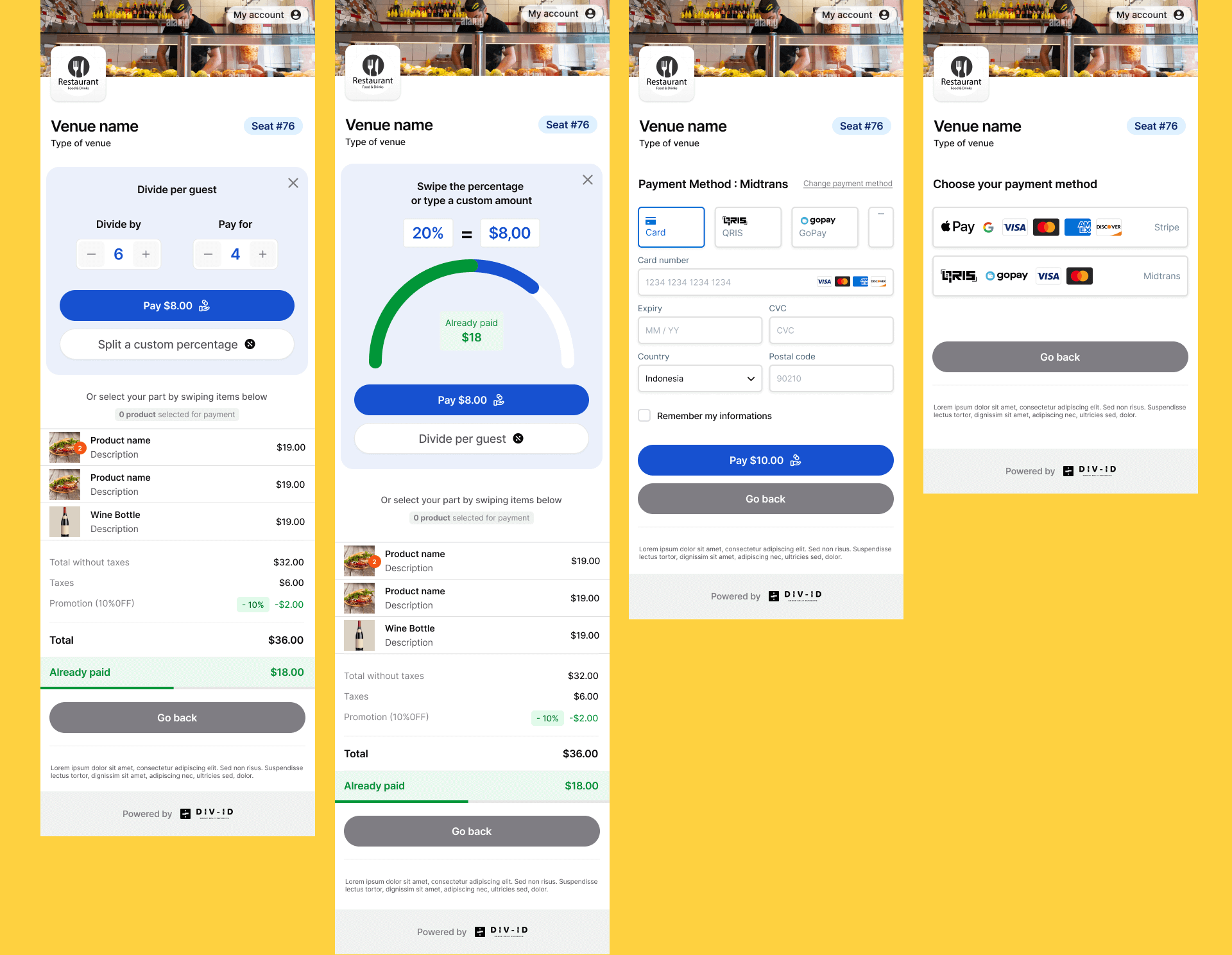 UX & UI Design — Restaurant Booking App | Bali End-to-end UX and UI design based on an existing logo and basic brand guidelines, for a mobile application allowing users to book a table, place orders, and split the bill with friends or colleagues at restaurants across Bali. The project covered two distinct products: a mobile app designed for consumers, and a back-office web interface built for restaurant professionals — including owners and staff — accessible from desktop computers.