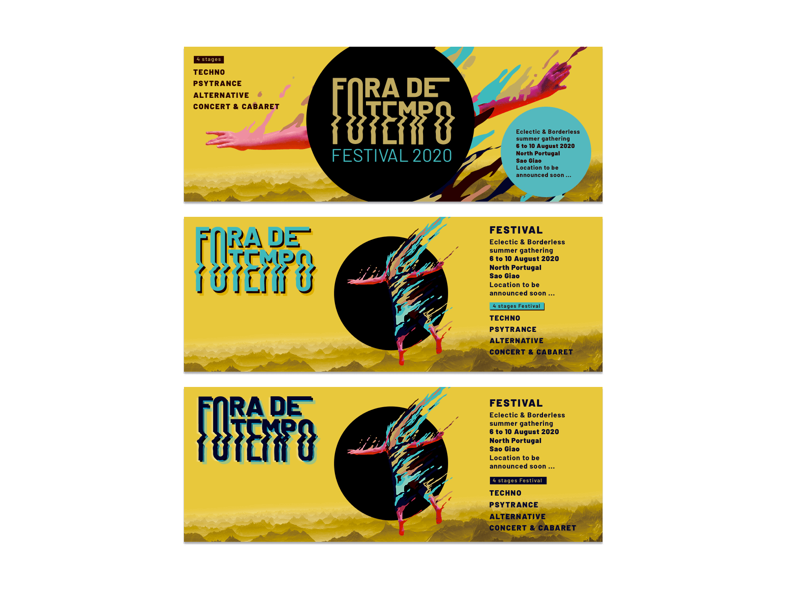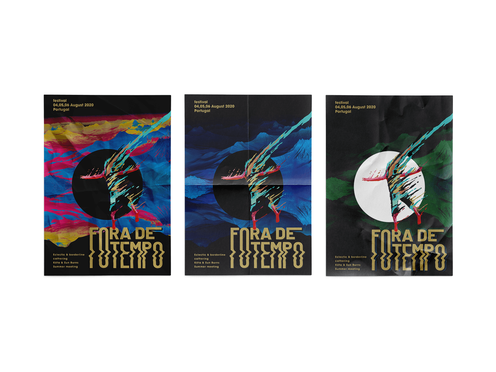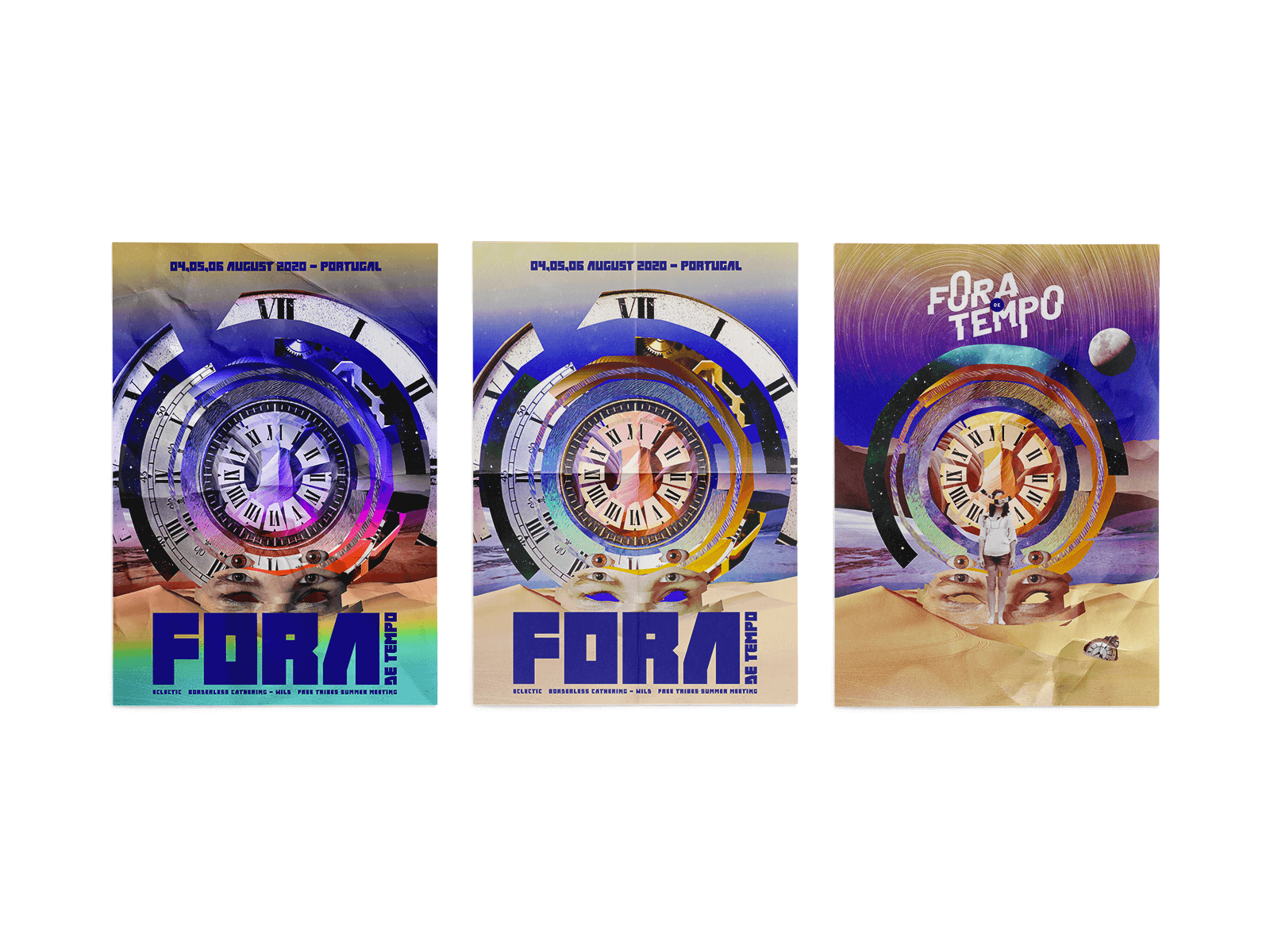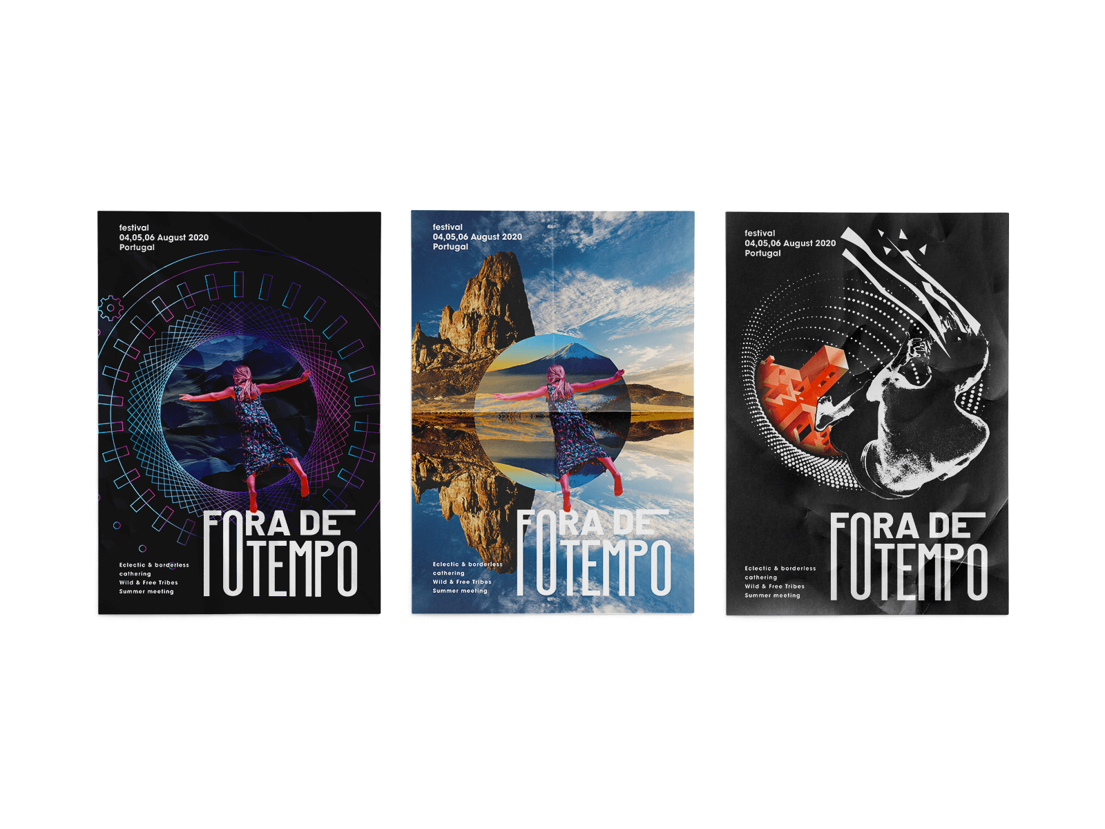 Client : Fora de tempo Festival. Portugal ( 5000 peoples ) Work : Art Direction 360° ( From logo to posters and Motions ) in collaboration with the creative directors of the festival. Production of the whole package communication on social networks. The festival organisation is a complexe conglomerate of french techno crews. Not easy to work with this biotope. Sadly delayed for ever because of COVID crisis...