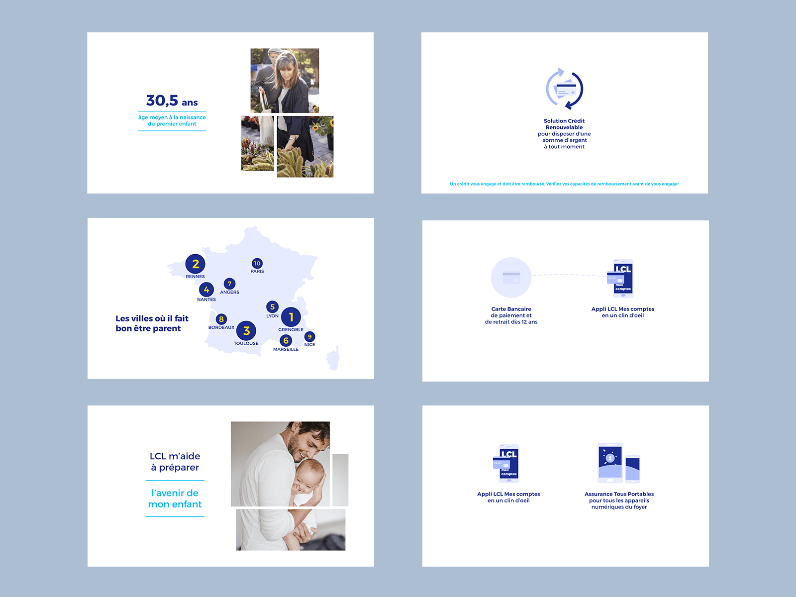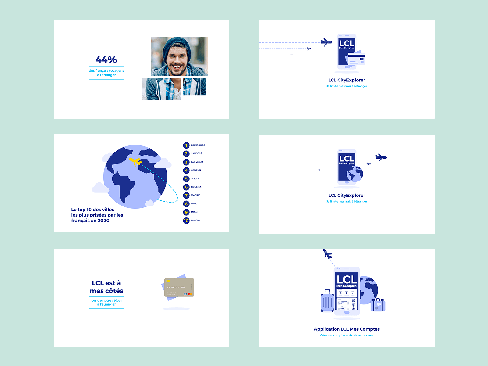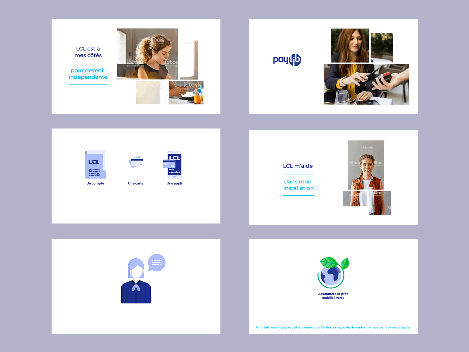 Client : Le Crédit Lyonnais Work : AD & motion. Motion Design x 8. Communication on FB & Youtube. Style " web tutorial ". Work on the Iconography.